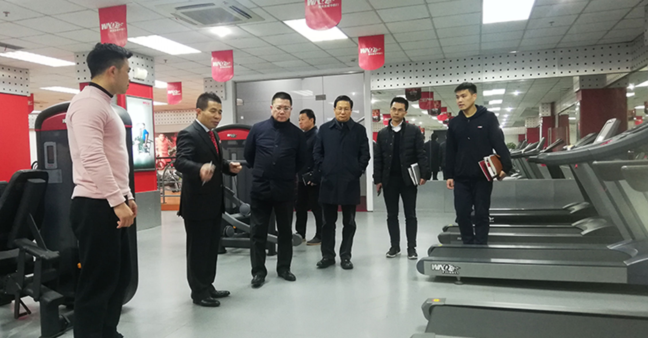 許副局長一行先參觀了jiuyou.com器材展廳,對我們的企業文化、發展情況、健身器材產品等進行了詳細了解,并重點關注了2018年jiuyou.com推出的F1-7000美格力量單站系列、W2000變形金剛系列和F4、F6跑步機等新品,jiuyou.com的力量單站產品大管徑的優質選材、源自美國的外形設計和新品跑步機的智能化等特點深得領導一行的肯定。